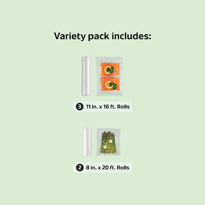 Enjoy the convenience of customizable vacuum sealer bags and storage bags. Say goodbye to wasted material and those tricky “doesn’t quite fit” situations. With the ability to create foodsaver vacuum seal of the perfect length, you can now tailor your storage solutions to your specific needs, making organization and preservation easier than ever.