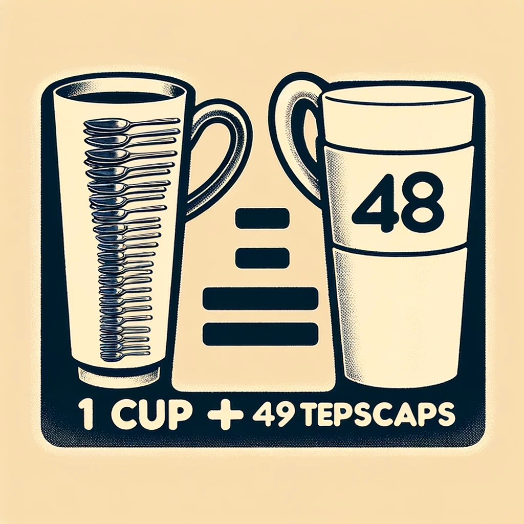 This means that if a recipe calls for 1 cup of an ingredient, you can measure it out as 48 teaspoons instead. This conversion is handy when you’re working with smaller measuring tools or when you need to adjust a recipe.